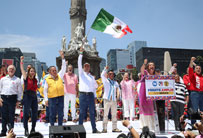 ◀ Arropada por panistas, priístas y perredistas en el Ángel de la Independencia, la senadora reconoció que sigue abajo de Morena en los sondeos, pero pronto alcanzaremos a ese partido. Foto María Luisa Severiano.