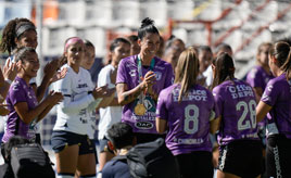 ◀ La ibérica recibió un reconocimiento de sus compañeras futbolistas y de la afición, en el cotejo en la capital hidalguense. Luis Rubiales renunció a la Real Federación Española de Futbol por el abuso a la mediocampista. Foto Ap