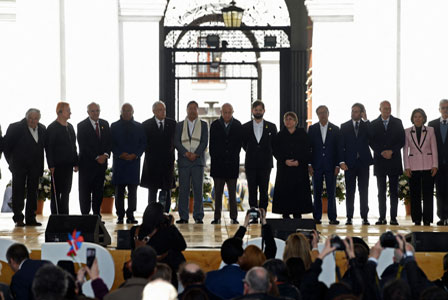 ▲ Los presidentes de México, Andrés Manuel López Obrador; de Bolivia, Luis Arce; de Colombia, Gustavo Petro; de Uruguay, Luis Lacalle; de Portugal, António Costa, y Chile, Gabriel Boric, al igual que personajes como el ex mandatario uruguayo José Mujica y Estela Barnes de Carlotto, la eterna buscadora de desaparecidos en Argentina, acudieron al Palacio de La Moneda para el homenaje a Salvador Allende. Foto Afp