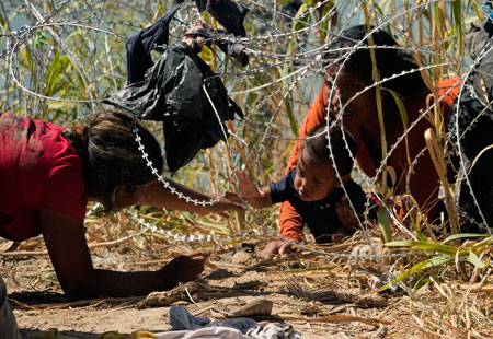 ▲ El gobernador Greg Abbott renovó la medida emitida por primera vez el 31 de mayo de 2021, con el argumento de que representan una amenaza continua e inminente para 58 condados. El Departamento de Seguridad del estado informó que en la semana recuperó los cuerpos de dos extranjeros que murieron ahogados en el río Bravo, entre ellos un niño de tres años. Mientras, más de 4 mil indocumentados que cruzaron de Ciudad Juárez, Chihuahua, a El Paso, fueron alojados en hoteles de esa urbe estadunidense para que esperen respuesta a su petición de refugio. La imagen, en Eagle Pass. Foto Ap / Agencias, J. Estrada, L. Ramos, J. Laureles, J. Xantomila y A. Alegrría