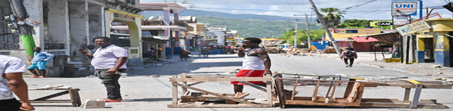 ▲ Hace tres años, el país caribeño vivió un momento de esperanza con un masivo movimiento social de oposición al ex presidente Jovenel Moïse (asesinado en julio de 2021), cuando en las calles de las principales ciudades llegó a haber más de un millón de personas en manifestaciones contra la corrupción del régimen. Ahora, los grupos que buscan una salida a las crisis de seguridad, gobierno y economía no pueden convocar a ninguna protesta sin poner en riesgo la vida de los participantes. Según datos de la ONU, casi la mitad de los 11.4 millones de habitantes de la nación necesitan ayuda humanitaria, mientras las instituciones y el Estado funcionan al mínimo y las bandas toman el control. La Jornada realizó un recorrido de siete días a invitación de organizaciones populares. En la imagen, barricada en el costeño Petit- Goâve. Foto Afp. Arturo Sánchez, Enviado