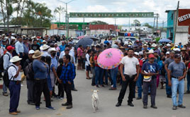 ◀ Seguidores del ex edil pevemista bloquean ingresos del municipio chiapaneco para exigir la destitución del concejo municipal, acusó un síndico. El viernes quemaron 43 casas y mantenían retenidos a 26 pobladores. Foto Cuartoscuro.