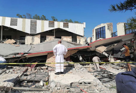 ▲ El desplome ocurrió a las 14:18 horas, cuando se realizaba un bautizo en el templo católico Santa Cruz, en la colonia Unidad Nacional, ubicada en la cabecera municipal de Ciudad Madero. Autoridades señalaron que 40 feligreses resultaron lesionados y, al cierre de edición, varias víctimas seguían atrapadas. La Sedena aplicó el Plan DN-III para la búsqueda de personas, mientras el gobierno de Américo Villarreal atribuyó la tragedia a fallas estructurales del inmueble. Foto La Jornada. Martín Sánchez, Corresponsal