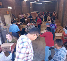 ▲ Decenas de maestros, acompañados de padres de familia, ingresaron en el almacén de los Servicios Educativos de Chihuahua, en Ciudad Madera, para tomar por su cuenta los libros de texto gratuitos y entregarlos en las escuelas. Lo anterior ocurrió luego de que autoridades locales anunciaron que, por segunda vez, suspendían la distribución de ejemplares. Foto La Jornada. / Corresponsales