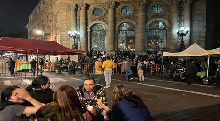 ▲ Unos cuantos manifestantes ocuparon anoche la escalinata del Congreso de la Ciudad de México contra la ratificación de la fiscal general de Justicia, Ernestina Godoy Ramos, la víspera de su encuentro con el Consejo Judicial Ciudadano. En la movilización no hubo presencia de las fuerzas de seguridad, la cual debe ser solicitada por la presidencia de la mesa directiva, a cargo de la legisladora blanquiazul Gabriela Salido. Foto José Antonio López. Sandra Hernández
