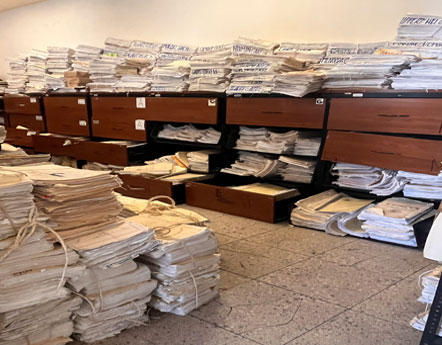 ▲ En gavetas, escritorios, sillas o inclusive en el piso se pueden observar los documentos de miles de casos que se ventilan en los tribunales capitalinos. A decir de servidores públicos, los servicios judiciales están rebasados por el cúmulo de denuncias. Foto Luis Castillo