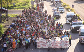 ◀ Unas 500 personas buscan sumarse a los 5 mil extranjeros que están desde el miércoles en Huixtla, distante a 45 kilómetros, en espera de respuesta de autoridades a la solicitud de que les entreguen documentos de tránsito por el país. Foto Cuartoscuro.