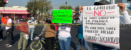 ▲ Habitantes de tres barrios realizaron un bloqueo en la calzada Ermita Iztapalapa para demandar que extranjeros sean trasladados a otra zona, ya que el albergue Casa del Migrante Arcángel Rafael, en la calle de Lerdo, está saturado y comenzaron a instalarse en arterias aledañas. La queja es que obstaculizan el paso de vecinos. Foto Alfredo Domínguez. / Redacción