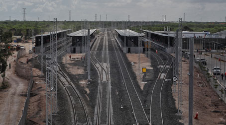▲ El presidente Andrés Manuel López Obrador dará el banderazo de salida al primer convoy de cuatro vagones, el cual partirá de la capital de Campeche a Cancún. La megaobra, con un costo de más de 515 mil millones de pesos, es uno de los proyectos centrales del actual gobierno. El mandatario ha reiterado que ese transporte potenciará el desarrollo del sureste. El Ejecutivo estará acompañado de invitados especiales en el recorrido de este viernes. El sábado se abrirá al público. Foto Marco Peláez. Emir Olivares, Enviado