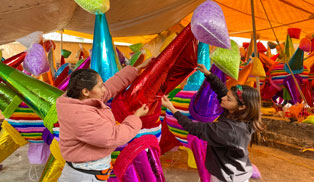 ▲ En Mixquic, la cooperativa Piñatalandia se alistó para la época de posadas, que comenzó ayer. Además, este fin de semana hay funciones de El cascanueces en el Auditorio Nacional y empezaron actividades en el Zócalo. Foto Roberto García Ortiz