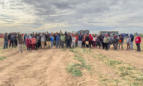 ◀ Más de 200 trabajadoras y trabajadores realizaron la protesta debido a que la empresa Las Cumbres no cubre completos los pagos de aguinaldo y liquidación de seis meses de contrato. Además, no cuentan con Seguro Social. Foto cortesía Lindero Norte.