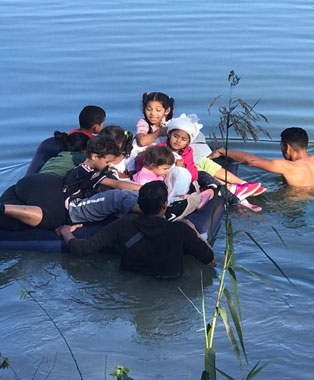 ▲ En colchones inflables, decenas de migrantes, sobre todo de Venezuela, reanudaron los cruces de Matamoros, Tamaulipas, a Brownsville, Texas, con el objetivo de pedir asilo humanitario en EU. Al otro lado de la orilla los esperan agentes del vecino país para comenzar los procesos de deportación a México o en vuelos directos a sus naciones de origen. Foto La Jornada. Julia Le Duc