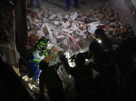 ◀ El siniestro, por acumulación de gas, ocurrió alrededor de las 7:15 de la noche en la calle Providencia. Causó daños en automóviles y casas aledañas, por lo que vecinos fueron evacuados. Hubo maniobras para rescatar a una mujer que fue encontrada sin vida debajo de los escombros. Foto Víctor Camacho /
