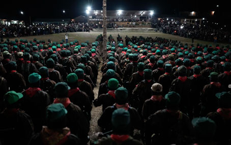 La propiedad debe ser del pueblo y común, y el pueblo tiene que gobernarse a sí mismo, expresó el subcomandante Moisés luego del desfile de jóvenes milicianos zapatistas, en el trigésimo aniversario del levantamiento indígena en Chiapas. La celebración se realizó en el caracol de Dolores Hidalgo, en Ocosingo. El espíritu de paz de un ejército que se alzó en armas por libertad, justicia y libertad quedó nuevamente de manifiesto. En esta ocasión no hubo comunicado escrito ni se contó con la presencia del capitán Marcos. Foto Ap