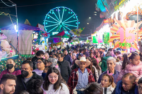 ▲ Familias llevan a sus niños a tomarse la foto con Melchor, Gaspar y Baltasar, a quienes los pequeños dejan sus cartas con las peticiones para el día 6, en la verbena instalada en calles del primer cuadro de la ciudad. Foto Pablo Ramos
