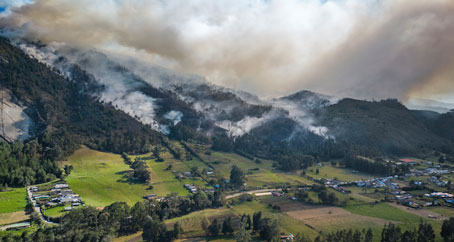 ▲ El gobierno del país sudamericano anunció ayer la “situación de desastre por 25 conflagraciones forestales activas en Cundinamarca, donde se encuentra la capital, Bogotá, así como en otros siete departamentos, y pidió la ayuda internacional para combatir los focos activos y otros más que se pueden generar por efecto del fenómeno El Niño, el cual trae consigo una disminución de las lluvias y un aumento de las temperaturas por el calentamiento del océano Pacífico. Foto Ap. Agencias