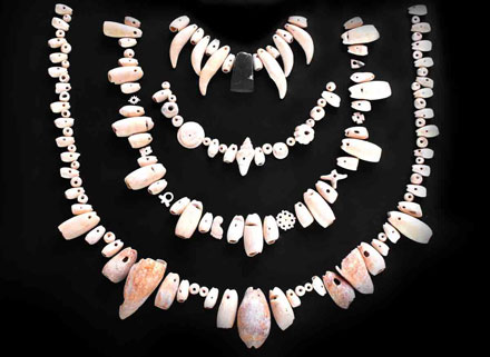 ▲ El director del INAH, Diego Prieto, informó ayer en la mañanera sobre el descubrimiento, durante la reubicación de estructuras del tramo 7, de un conjunto de collares colocados a manera de ofrenda y compuestos de 112 elementos agrupados en 10 formas diferentes, entre ellos conchas y caracol, un hacha de piedra verde y colmillos de un animal que podría ser jaguar. Asimismo, reportó que el pasado martes se rompió el récord de asistencia en Chichén Itzá con 7 mil 500 personas. Foto INAH / Á. Cruz y E. Olivares