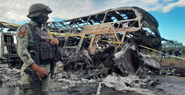 ▲ Un autobús quedó calcinado tras chocar con un tráiler volcado en la vía Culiacán-Mazatlán. Foto El Debate. / Irene Sánchez