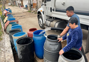 ▲ En la colonia Tizitlipa, alcaldía Xochimilco, las autoridades distribuyen por medio de pipas el agua potable extraída de un pozo. Rodrigo Gutiérrez, experto del Instituto de Investigaciones Jurídicas, llamó a dar información más detallada sobre el desabasto del líquido en la capital. Foto Luis Castillo