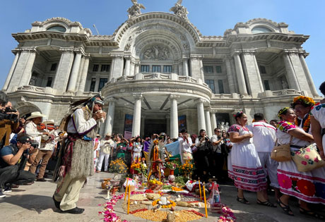 ▲ En un acto en el Palacio de Bellas Artes, Adelfo Regino, titular del Instituto Nacional de Pueblos Indígenas, expuso que una de las tareas del nuevo organismo será impulsar en el Congreso la reforma que envió el presidente Andrés Manuel López Obrador para que se cumplan los derechos políticos, territoriales, de educación, cultura y lengua de los pueblos originarios. En el consejo están representados 68 comunidades del país y el pueblo afromexicano. Foto Roberto García Ortiz. / Carolina Gómez