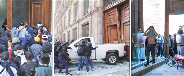 Un grupo de encapuchados se apoderó de una camioneta de la Comisión Federal de Electricidad y la usó como ariete para destrozar una puerta de Palacio Nacional ...