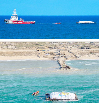 ▲ El buque de Open Arms (Brazos Abiertos), que partió de Chipre cargado de alimentos el martes, llegó ayer a la costa gazatí en la primera misión de una ruta marítima para acercar ayuda a la franja. El presidente de Estados Unidos, Joe Biden, suscribió las declaraciones del líder demócrata en el Senado, Chuck Schumer, quien llamó a celebrar elecciones anticipadas en Israel y lanzó una dura crítica al primer ministro israelí, Benjamin Netanyahu. Éste aprobó los planes para un asalto militar a Rafah, donde se refugian más de un millón de palestinos. En tanto, la Agencia de Naciones Unidas para los Refugiados Palestinos en Medio Oriente (Unrwa) alertó que la guerra en Gaza dejó ya 23 millones de toneladas de escombros, 31 mil 490 muertos y 73 mil 439 heridos. Fotos Afp / Chris Stevenson, The Independent y Agencias