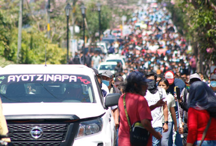 ▲ Unos 3 mil integrantes de la Federación de estudiantes Campesinos Socialistas de México se manifestaron en Chilpancingo, apoyados por otras agrupaciones sociales, para exigir que se esclarezca el homicidio del alumno de la Normal de Ayotzinapa Yanqui Kothan Gómez, perpetrado el pasado 7 de marzo, el cual fue un delito extrajudicial. además, rechazaron cualquier vinculación a institutos políticos o que su lucha sea en contra de las autoridades morenistas. Foto Cuartoscuro / S. Ocampo, corresponsal