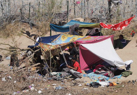 Migrantes que buscan asilo en Estados Unidos han levantado precarias tiendas de campaña a lo largo de frontera de Ciudad Juárez, Chihuahua. La resolución de la Corte Suprema de Estados Unidos, que permitía la aplicación de la ley antimigrante de Texas, provocó alarma en grupos de derechos humanos ante el riesgo de mayores abusos contra indocumentados. Foto Afp