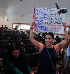 ▲ La falta de transparencia en su gestión, el cártel inmobiliario y su rechazo al matrimonio igualitario fueron algunos de los temas que estudiantes plantearon al candidato de la alianza PAN, PRI y PRD. Durante dos horas expuso su proyecto de ciudad y varios asistentes le reprocharon que llevara acarreados. Foto Cristina Rodríguez.