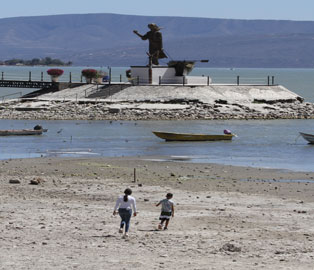 ▲ La Unesco advirtió que entre más aumenta el estrés hídrico en el mundo también lo hace el riesgo de conflictos sociales, por lo que para preservar la paz exhorta a la cooperación internacional en este tema. Indicó que entre 2002 y 2021 las sequías afectaron a más de mil 400 millones de personas. Se suman problemas de contaminación, mal manejo del recurso y el colapso ambiental. En la imagen de arriba, el lago de Chapala, Jalisco, que apenas tiene 48 por ciento de almacenamiento. Abajo, un río en Pecatu, Bali, Indonesia. Fotos Arturo Campos Cedillo y Ap