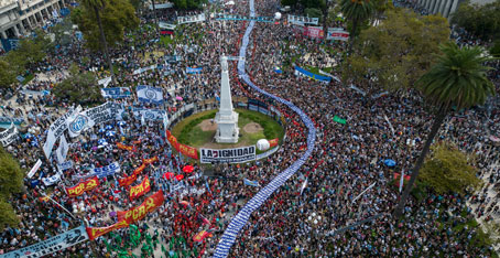 el pueblo está de pie frente al gobierno neofascista de Javier Milei; en otras ciudades hubo movilizaciones similares. En un video, el mandatario negó que hubiera 30 mil desaparecidos en esa etapa. Foto Ap. Stella Calloni