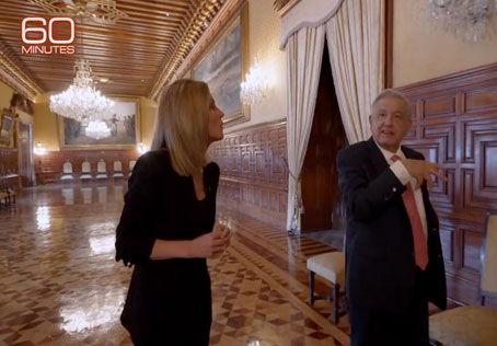 ▲ En una entrevista con el programa 60 Minutos, de la cadena estadunidense CBS, el presidente mexicano abordó éste y otros temas con la periodista Sharyn Alfonsi. Expuso que si no se invierten 20 mil mdd en América Latina y el Caribe y se regulariza a mexicanos que viven en EU,