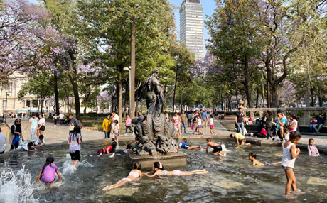 ▲ El servicio meteorológico Nacional informó que en los recientes siete días hubo temperaturas iguales o mayores a 35 grados en las costas del Pacífico, así como en la Península de Yucatán y el occidente del país. de los 653 acuíferos que existen, la conagua reportó que sólo 111 tienen alta disponibilidad de líquido. las fuentes de la alameda central (imagen) han sido un imán para los niños. Foto Roberto García Ortiz./ A. Enciso