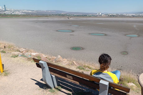 ▲ La presa El Palote, principal fuente hídrica de la zona norte de León y uno de los más importantes atractivos turísticos de la ciudad, está seca. El Parque Metropolitano instaló un albergue para proteger a gansos, patos y gallaretas. El gobierno local anunció una inversión de mil 200 millones de pesos en un sistema de nanotecnología para potabilizar agua. Foto Carlos García / C. García, corresponsal