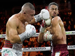 ◀ El mexicano Isaac Cruz doblegó a Rolando Romero por la vía del nocaut técnico en el octavo asalto, con lo cual se coronó en la Asociación Mundial de Boxeo. En otra pelea, el estadunidense Sebastián Fundora arrebató el cinturón superwélter de la OMB al australiano Tim Tszyu, en la T-Mobile de Las Vegas. Foto Ap