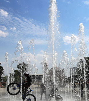 ▲ Por la ola de calor, los registros máximos oscilarán entre 40 y 45 grados en al menos 14 estados, anticipó Meteored; estas condiciones persistirán hasta el fin de semana. El aumento se debe a un sistema de alta presión, aparejado al fenómeno de El Niño, y la temporada de estiaje. En Guerrero, el río Balsas está a 40 por ciento de su capacidad. La imagen, en Plaza Tlaxcoaque. Foto Yazmín Ortega. / De la Redacción y Sergio Ocampo