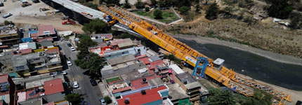 ▲Uuna lanzadora de dovelas (una especie de grúa utilizada para la construcción de puentes) de 200 metros de longitud y 800 toneladas de peso se desplomó del viaducto elevado a la altura de la presa Tacubaya, alcaldía Álvaro Obregón, sin que se reportaran personas lesionadas. es el cuarto incidente en el proyecto en lo que va del año. Foto Cuartoscuro. / Rocío González y Elba Bravo