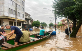 ◀ En la peor catástrofe climática de la región, 78 personas han muerto, 150 están desaparecidas y 135 mil fueron desalojadas debido a las torrenciales lluvias. Ciudades enteras están bajo el agua. El centro de Porto Alegre, capital de Río Grande del Sur, sigue inundado. Foto Afp.Agencias