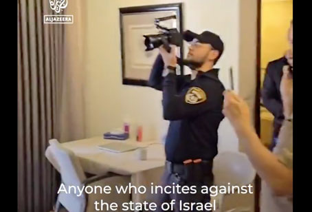 ▲ La policía confiscó el equipo de la televisora catarí Al Jazeera. La emisora salió de los principales proveedores de cable y satélite de Israel después del allanamiento. Empero, su sitio web y múltiples enlaces seguían funcionando y continuó con sus operaciones en Gaza. En la imagen escribió: