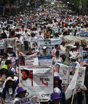 esa práctica de lesa humanidad, que suma –afirmaron– 115 mil personas sin localizar. También exigieron la pronta solución a la crisis forense. Foto Yazmín Ortega C. J. Laureles, V. Ballinas,