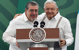 ▲ Ayer en Tapachula, Chiapas, se efectuó la primera reunión de los presidentes de Guatemala, Bernardo Arévalo, y de México, Andrés Manuel López Obrador. Foto Afp