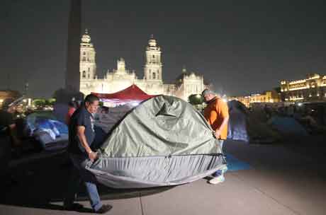 ▲ Profesores de la CNTE recolocan sus tiendas de campaña en las orillas del Zócalo. Antes, el dirigente Héctor Torres informó que en la mesa de negociación, Luisa María Alcalde, titular de la SG, afirmó que, de entrada, la plancha no estaba en la discusión, que era un espacio público. le respondimos que el lugar era de todos. Foto Yazmín Ortega Cortés