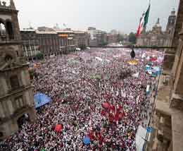 ►▼ En la imagen superior, una multitud colmó el Zócalo en el cierre de campaña de Claudia sheinbaum. Abajo, a la izquierda, el abanderado de movimiento Ciudadano durante un acto en un pequeño salón de la Hipódromo Condesa, en la CDMX. A la derecha, la candidata de la alianza de PAN, PRI y PRD, en el mitin en la Arena Monterrey de la capital de Nuevo León. Fotos La Jornada y Ap.