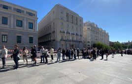 ◀ La afluencia de mexicanos para emitir su voto en el extranjero rebasó previsiones del INE; hubo gran molestia por la lentitud. El instituto informó que en total sufragaron 223 mil 961, la mayoría en Estados Unidos. La imagen, en Madrid. Foto A. Tejeda.