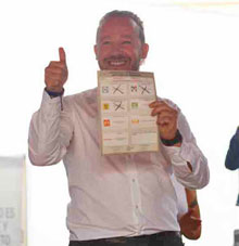 Acompañado de dirigentes de PAN, PRI y PRD, llamó a sus seguidores a defender su triunfo