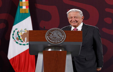 ▲ En la mañanera, el presidente Andrés Manuel López Obrador apareció con gran sonrisa. Destacó que la jornada electoral deja varias lecciones: que los ciudadanos reafirmaron su vocación democrática, que el pueblo es agradecido y que Claudia Sheinbaum, la ganadora de la contienda, es una mujer honesta y muy inteligente. Confirmó que pronto se reunirá con la virtual mandataria electa y podrían realizar giras juntos para acelerar el proceso de transición. Foto Pablo Ramos. Emir Olivares y Arturo Sánchez