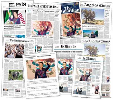 ▲ Diarios renombrados en el mundo destacaron en sus primeras planas el holgado triunfo de Claudia Sheinbaum Pardo, de la coalición Sigamos Haciendo Historia, en la contienda por la Presidencia de México. infografía