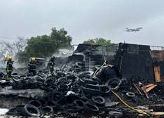 ◀ La conflagración ocurrió en avenida 602 y Ferrocarril, con saldo de 48 personas desalojadas y 11 viviendas dañadas. Autoridades señalaron que el siniestro se debió al derrame de combustible de una pipa, pero colonos afirmaron que fue por huachicoleo. Foto A. Domínguez.