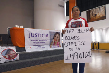 ▲ Jaqueline Palmeros, madre de la joven desaparecida Jael Montserrat Uribe y fundadora del colectivo Una Luz en el Camino, detalló en conferencia de prensa las irregularidades procesales de la jueza Belem Bolaños Martínez, quien liberó a dos imputados en la desaparición forzada de su hija. Anunció que emprenderá acciones legales para que se reponga el juicio. Foto José Ángel / Pablo García.