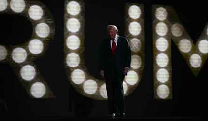 ◀ Donald Trump arriba al escenario para su discurso como aspirante presidencial. Foto Afp